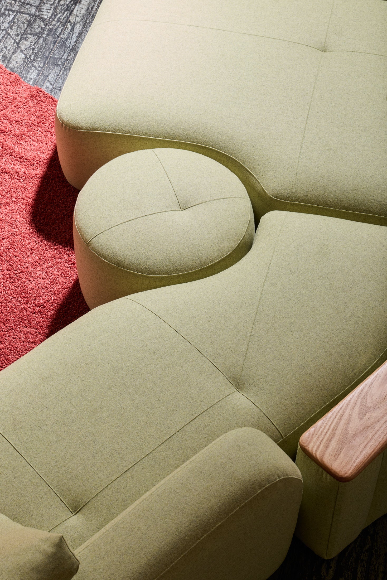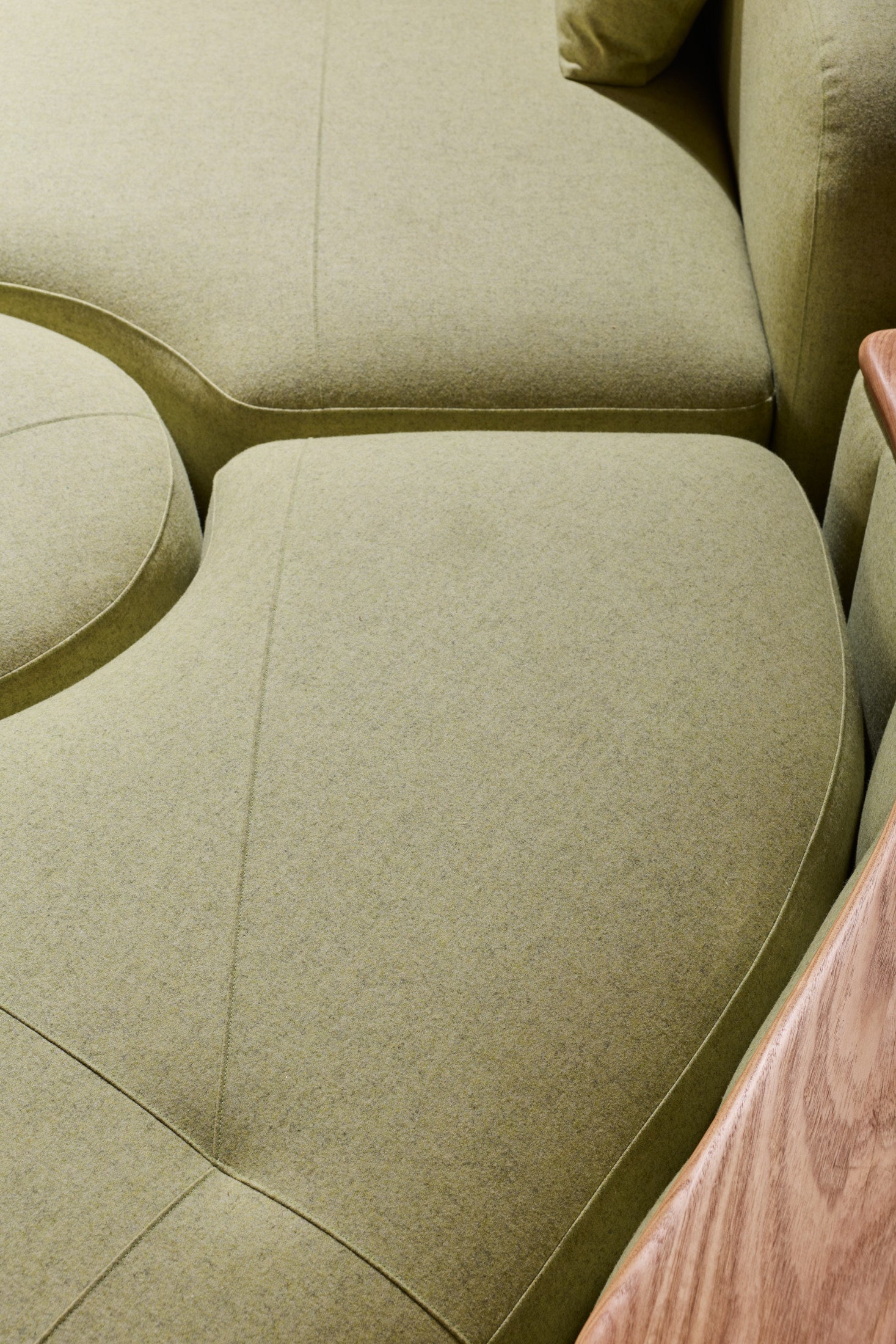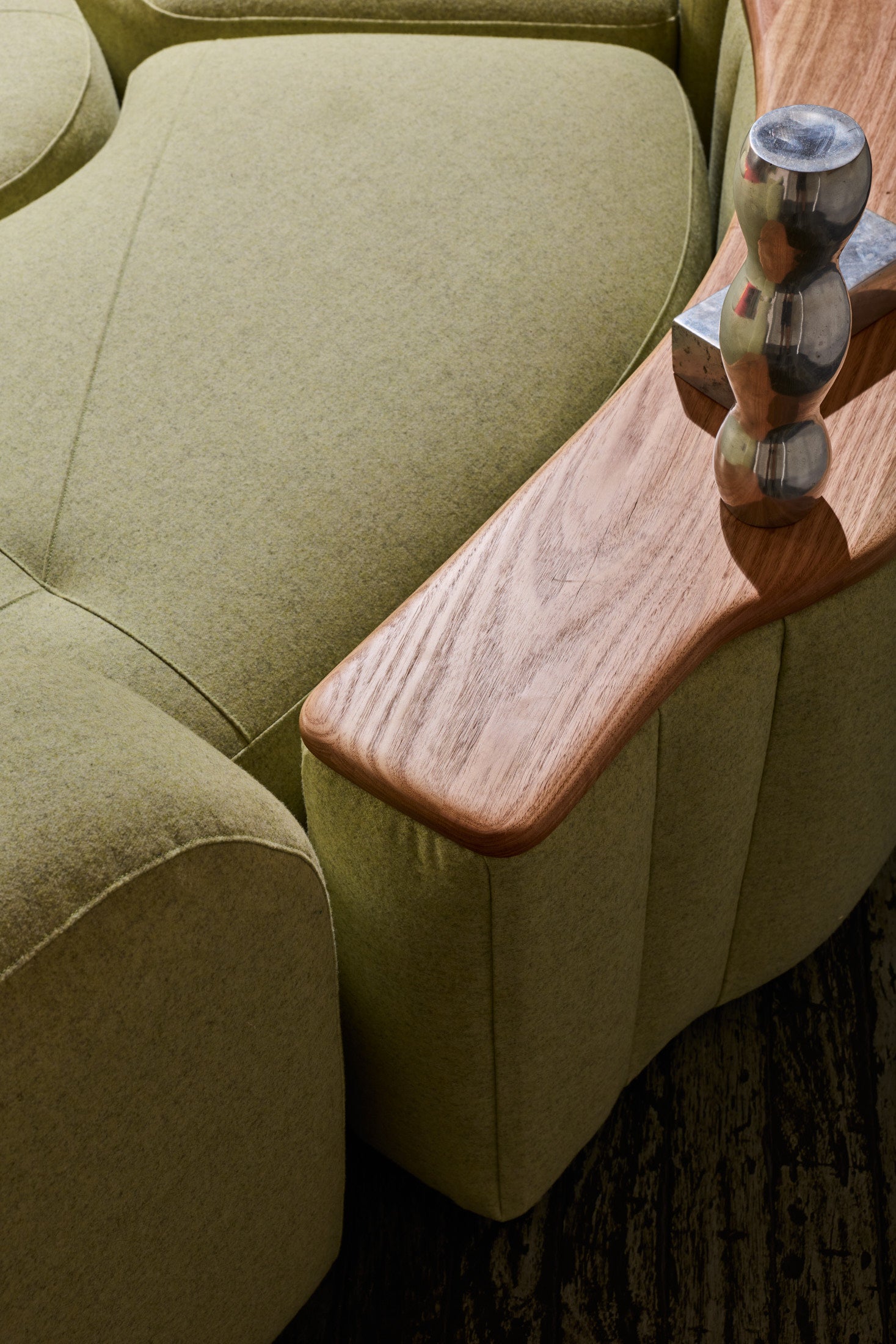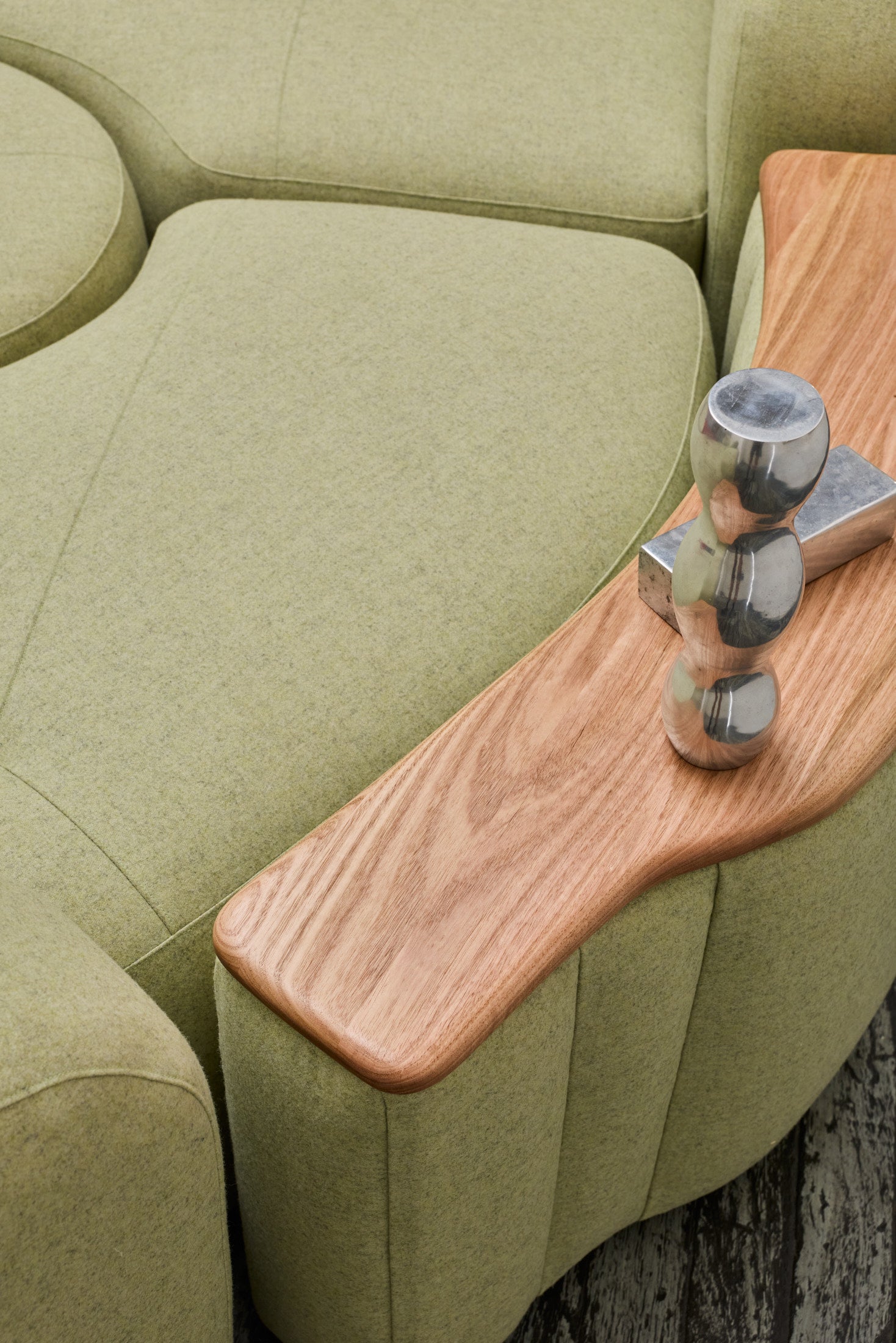 The Romulus Modular is a post-modern seating system defined by its sculptural form and integrated functionality. A upholstered shelf integration offers subtle functionality whilst maintaining a clean architectural profile. Pictured is a custom Romulus modular (Sold) featuring Native Australian Ash timber curated from a closed down Victorian Mill (Pictured on upholstered shelf). 100% Pressed Heavy Weight wool from our privately sourced fabric partners. Other upholstery options available from most commercial upholstery suppliers, designer fabrics and exotic timbers available.