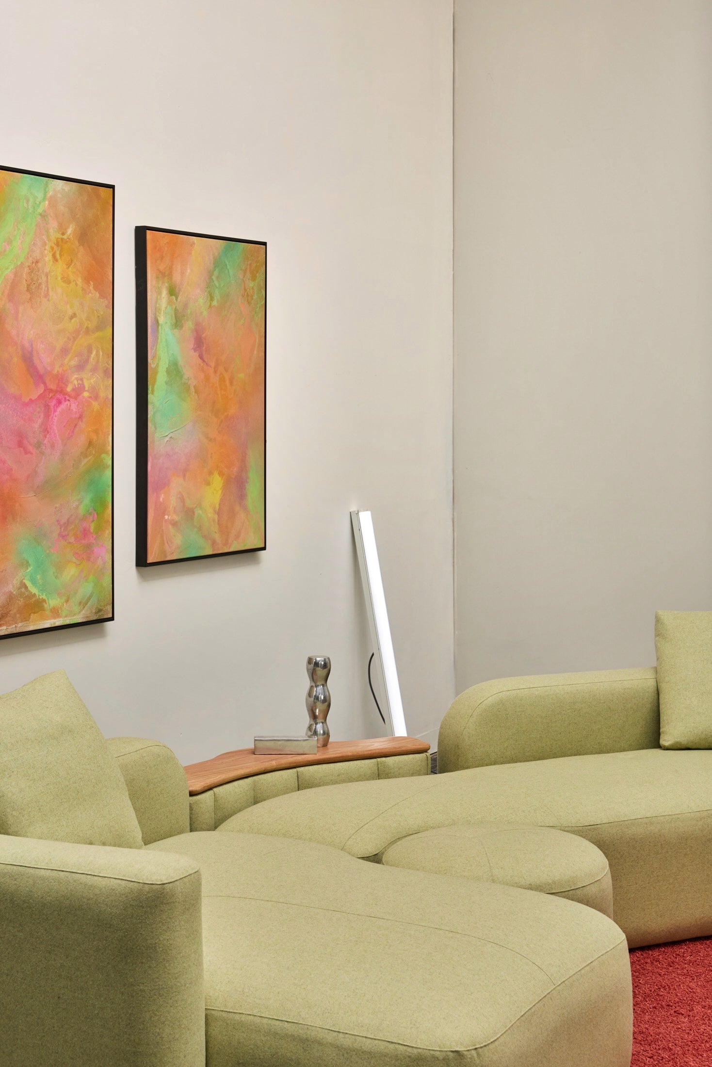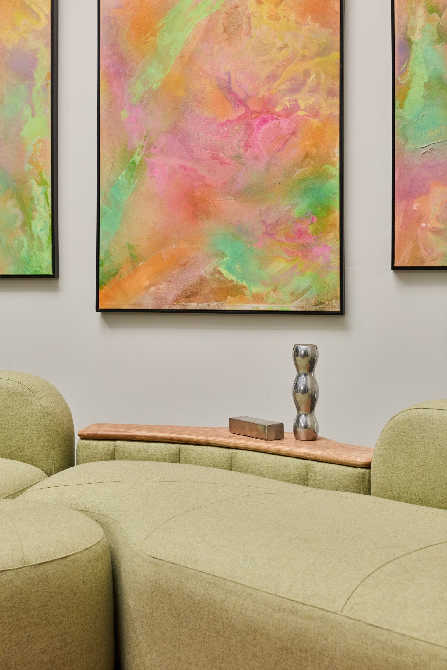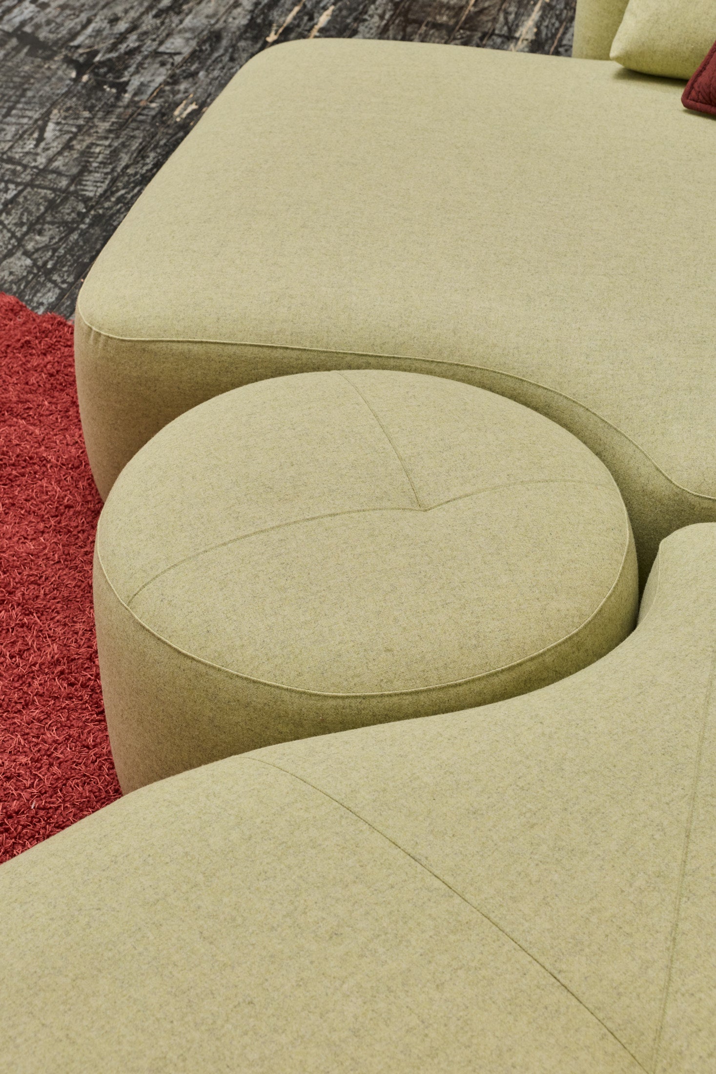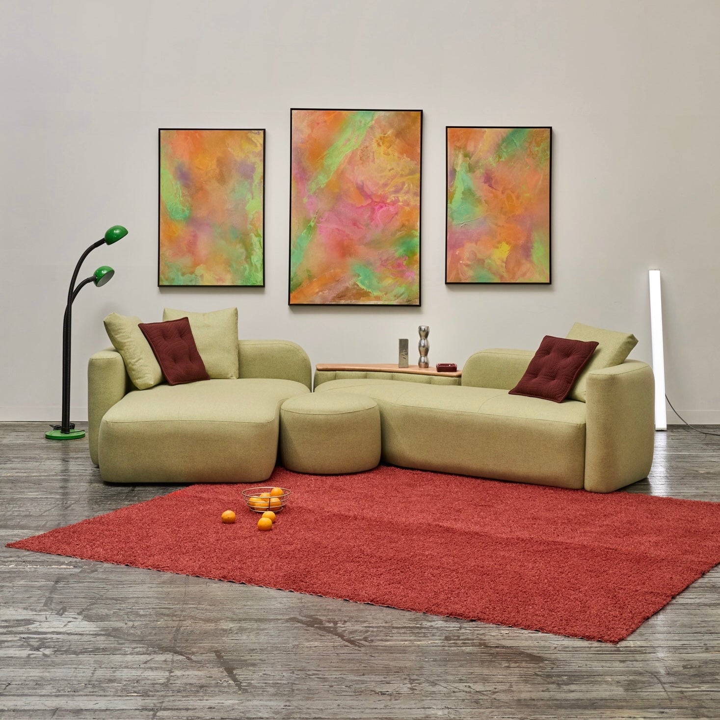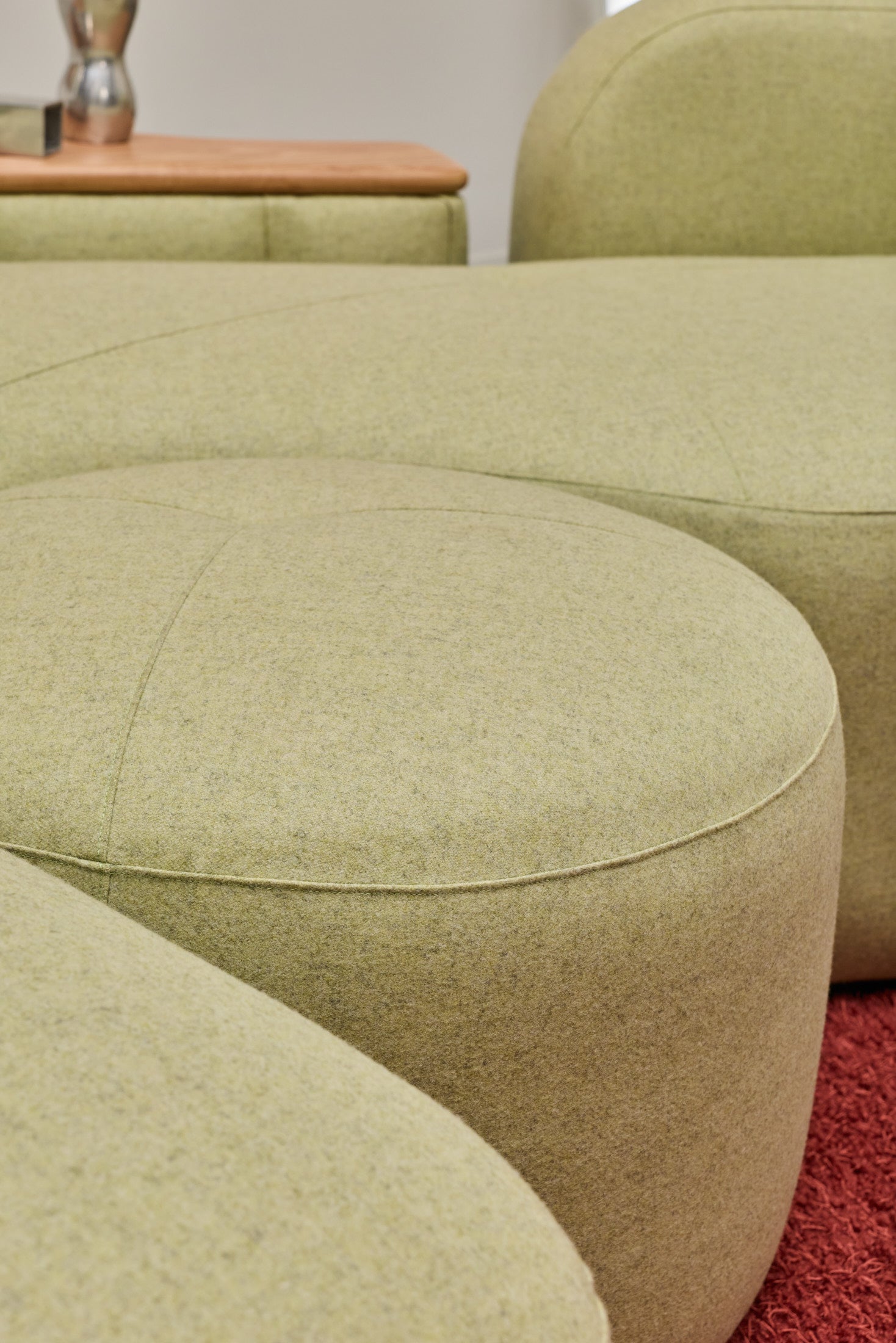 The Romulus Modular is a post-modern seating system defined by its sculptural form and integrated functionality. A upholstered shelf integration offers subtle functionality whilst maintaining a clean architectural profile. Pictured is a custom Romulus modular (Sold) featuring Native Australian Ash timber curated from a closed down Victorian Mill (Pictured on upholstered shelf). 100% Pressed Heavy Weight wool from our privately sourced fabric partners. Other upholstery options available from most commercial upholstery suppliers, designer fabrics and exotic timbers available.
